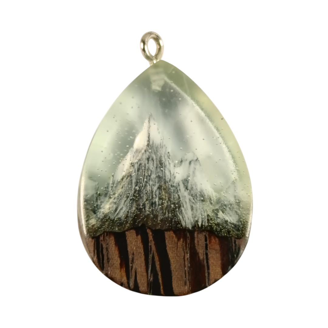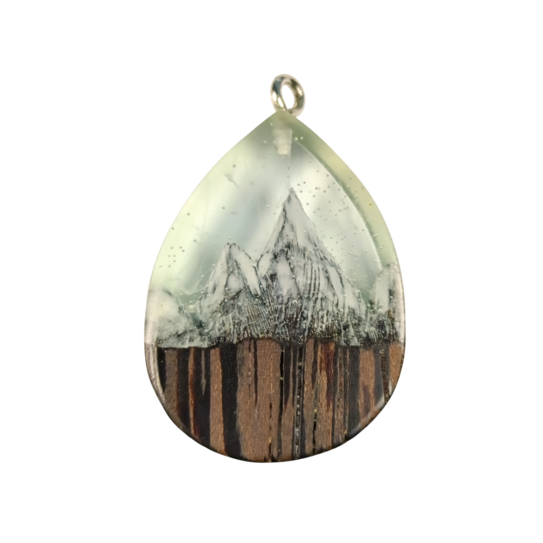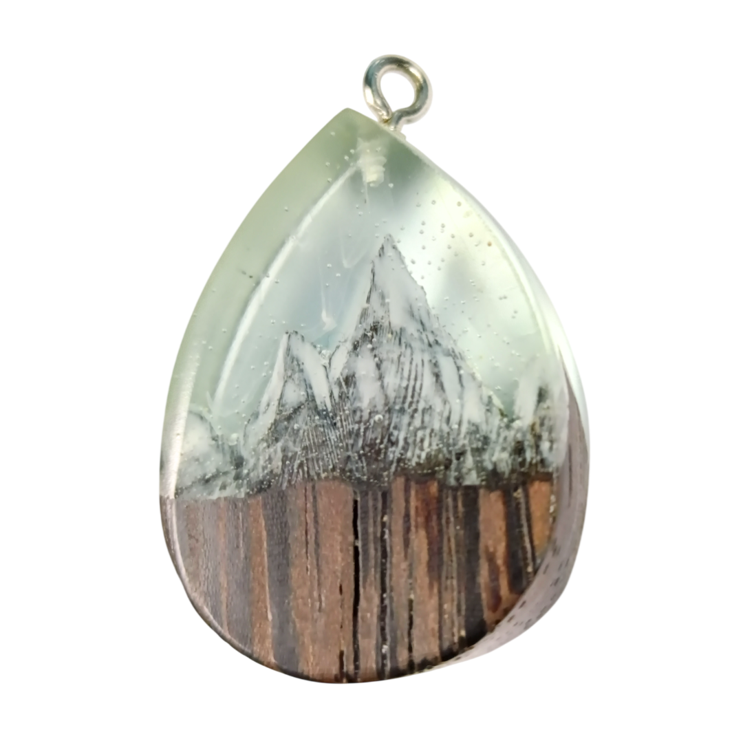 Mountain Pendant in Wenge and Crystal Resin | Handmade