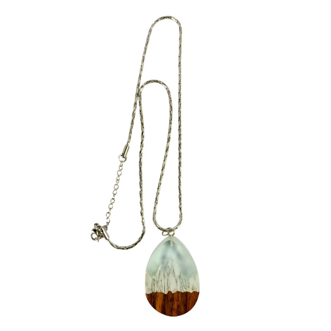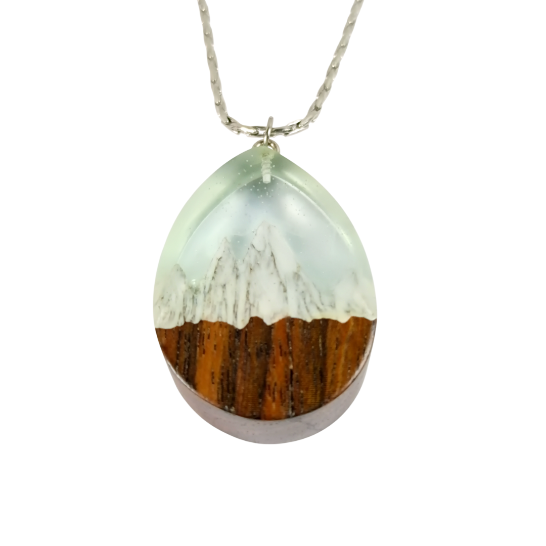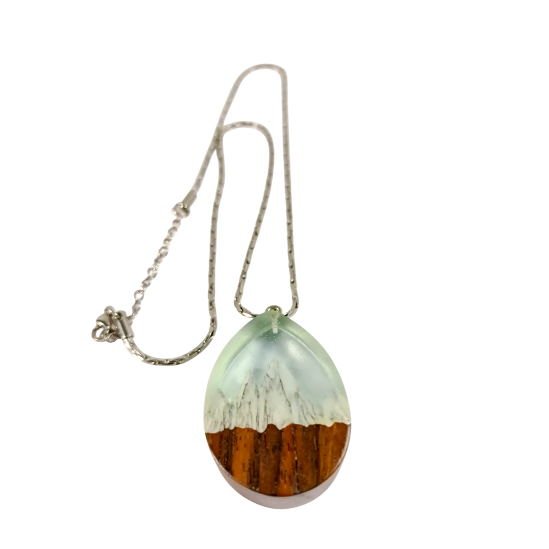 Mountain Pendant in Resin and Pau Santo Wood | Handmade Stainless Steel Necklace