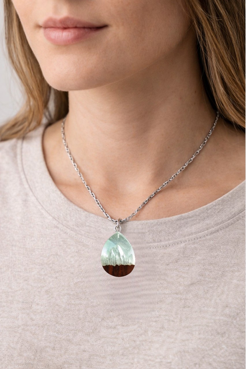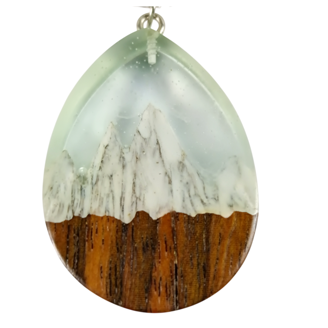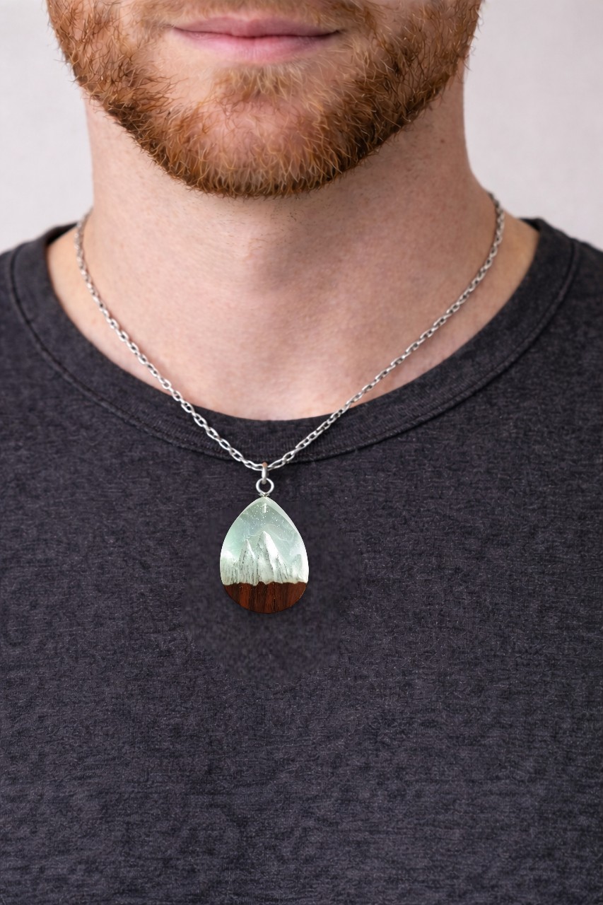 Mountain Pendant in Resin and Pau Santo Wood | Handmade Stainless Steel Necklace