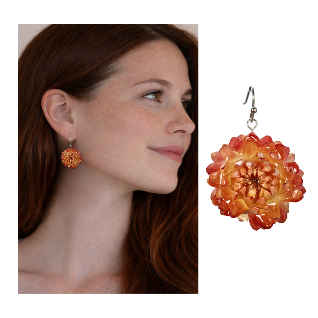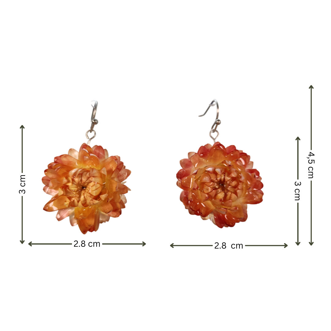 Brincos Flor Natural Laranja com Resina Cristal | Aeterna