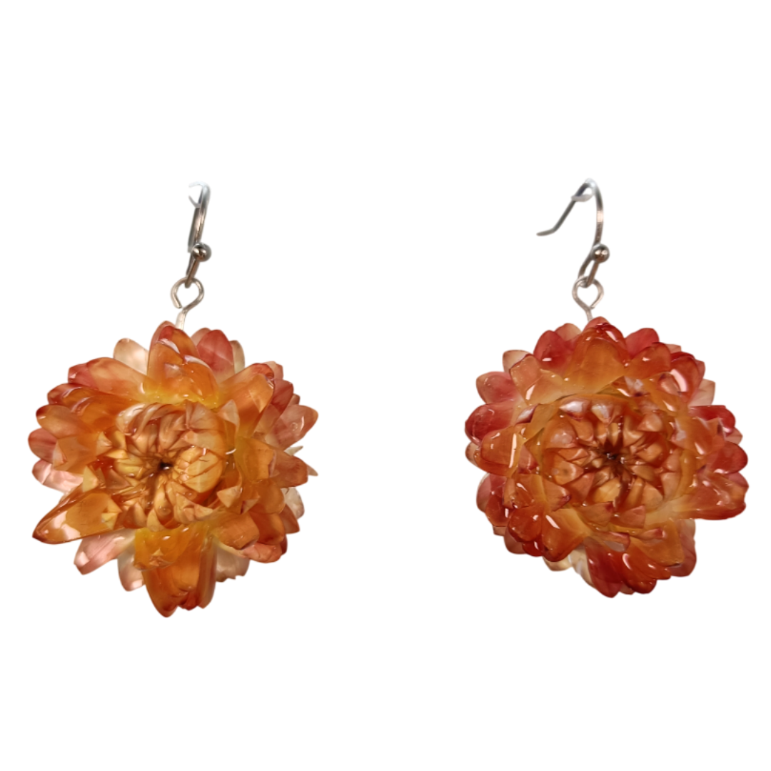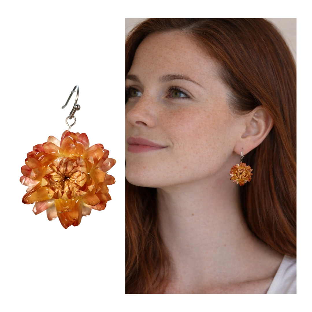 Aeterna – Brincos Flor Natural Laranja em Resina Cristal | Artesanal