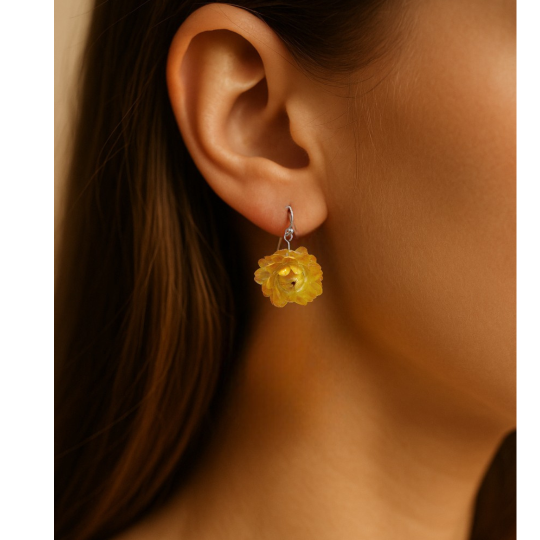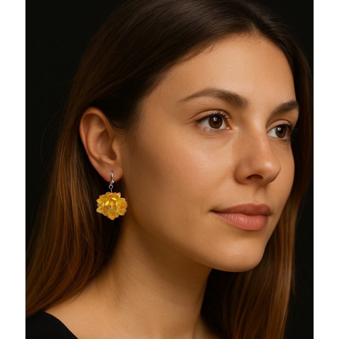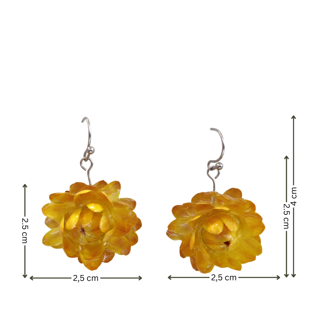 Brincos artesanais Aeternus “Flor de Inverno” – Amarelos.