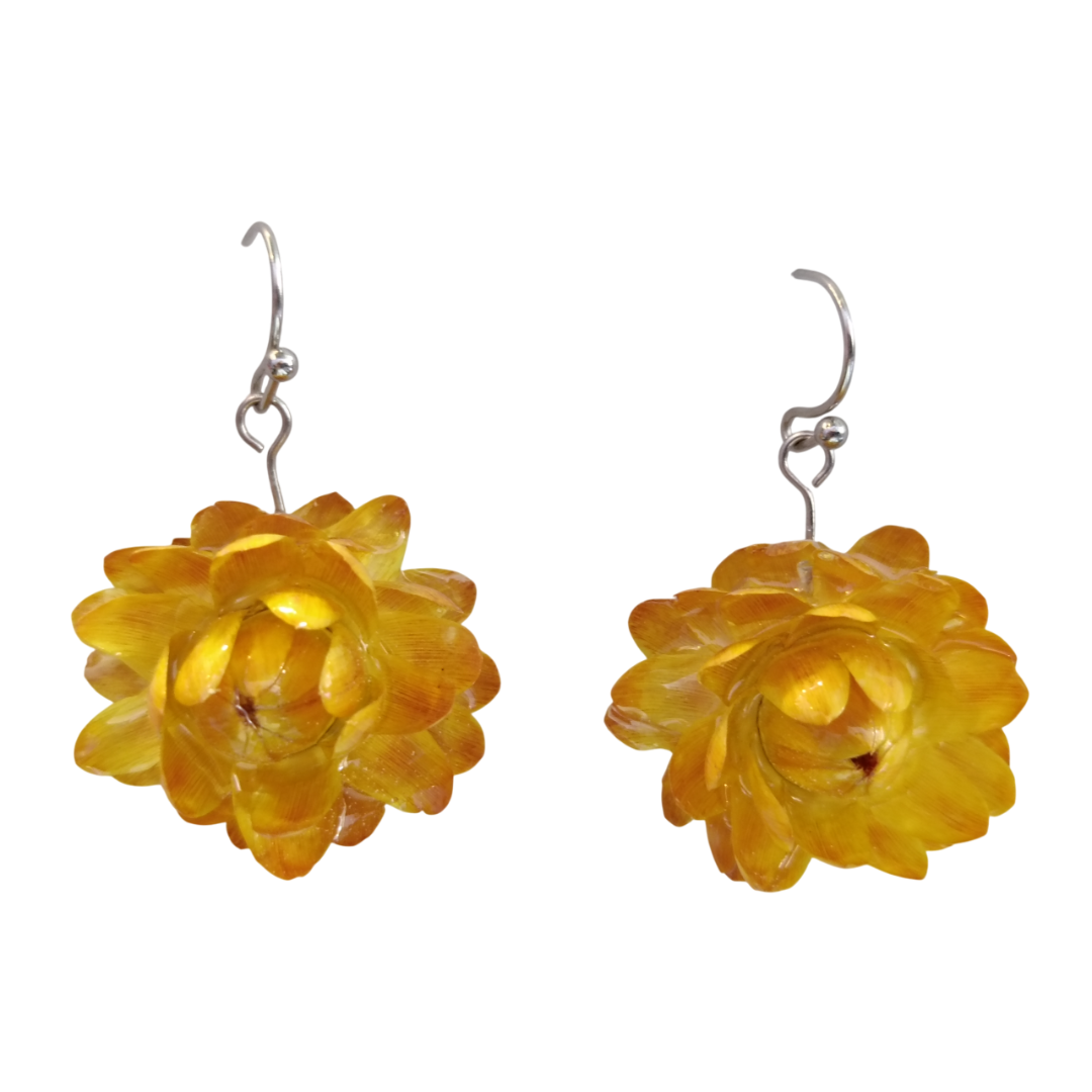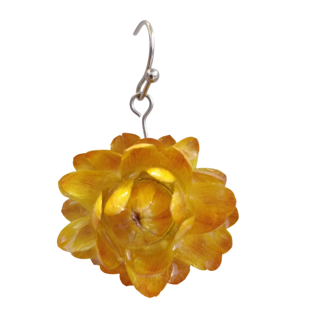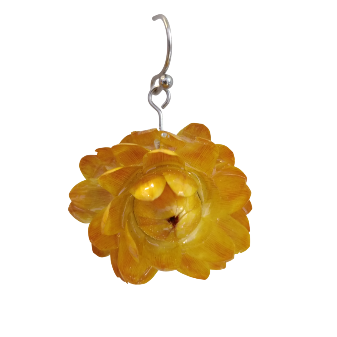 Brincos artesanais Aeternus “Flor de Inverno” – Amarelos.