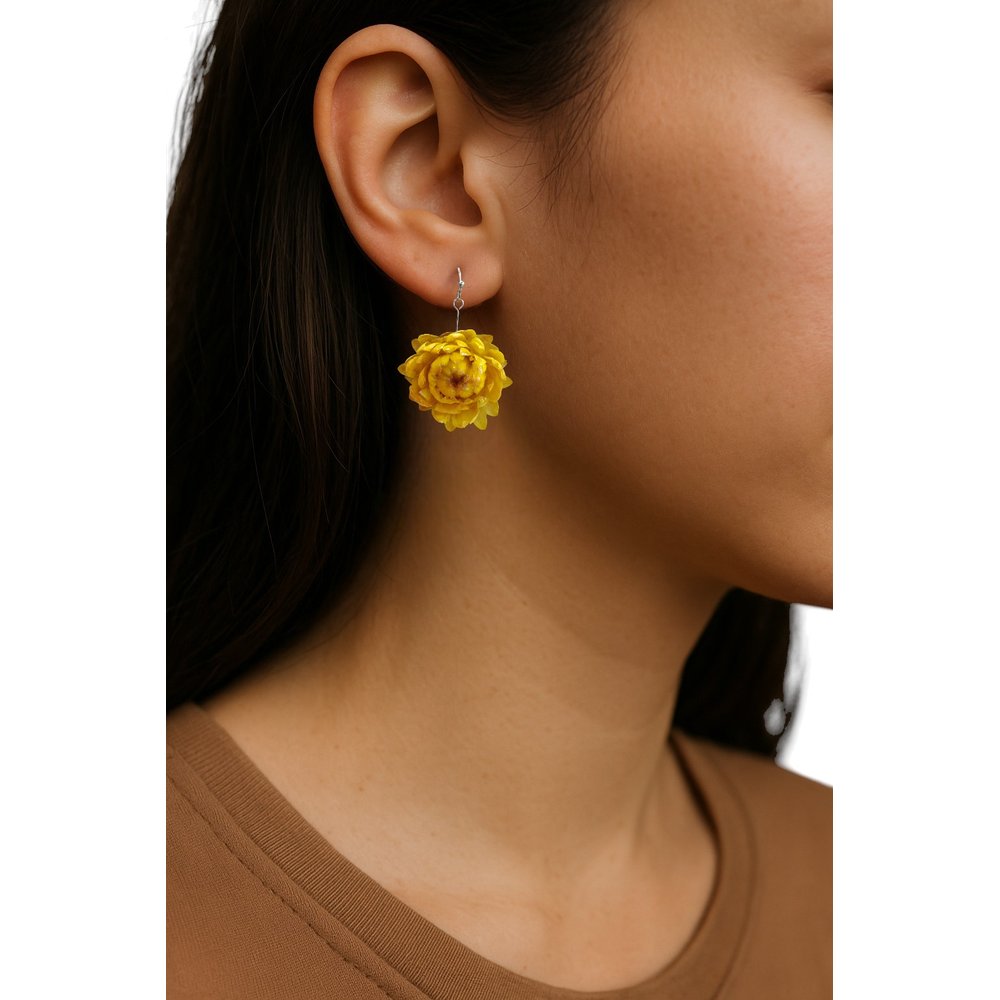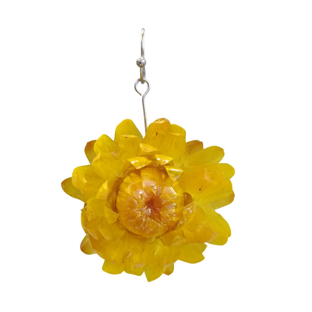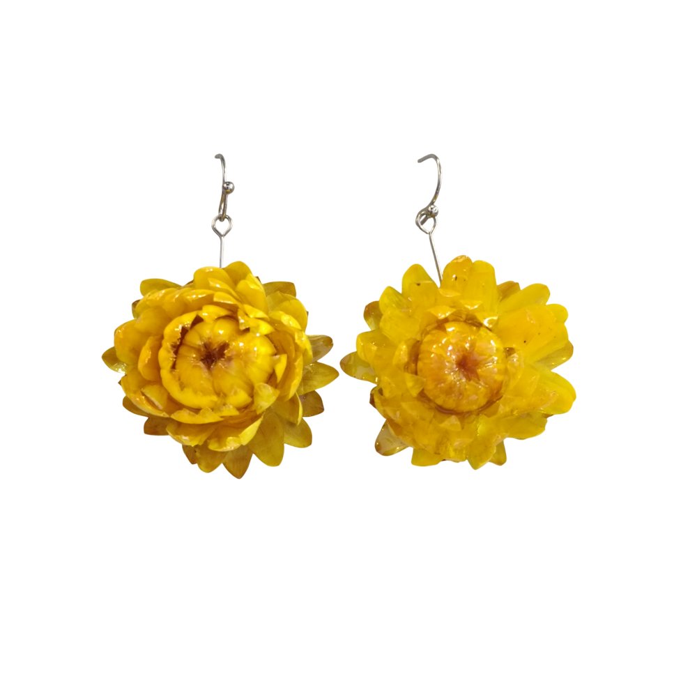 Brincos Artesanais com Flores Naturais Amarelas com Resina – Aeternus ( b130)