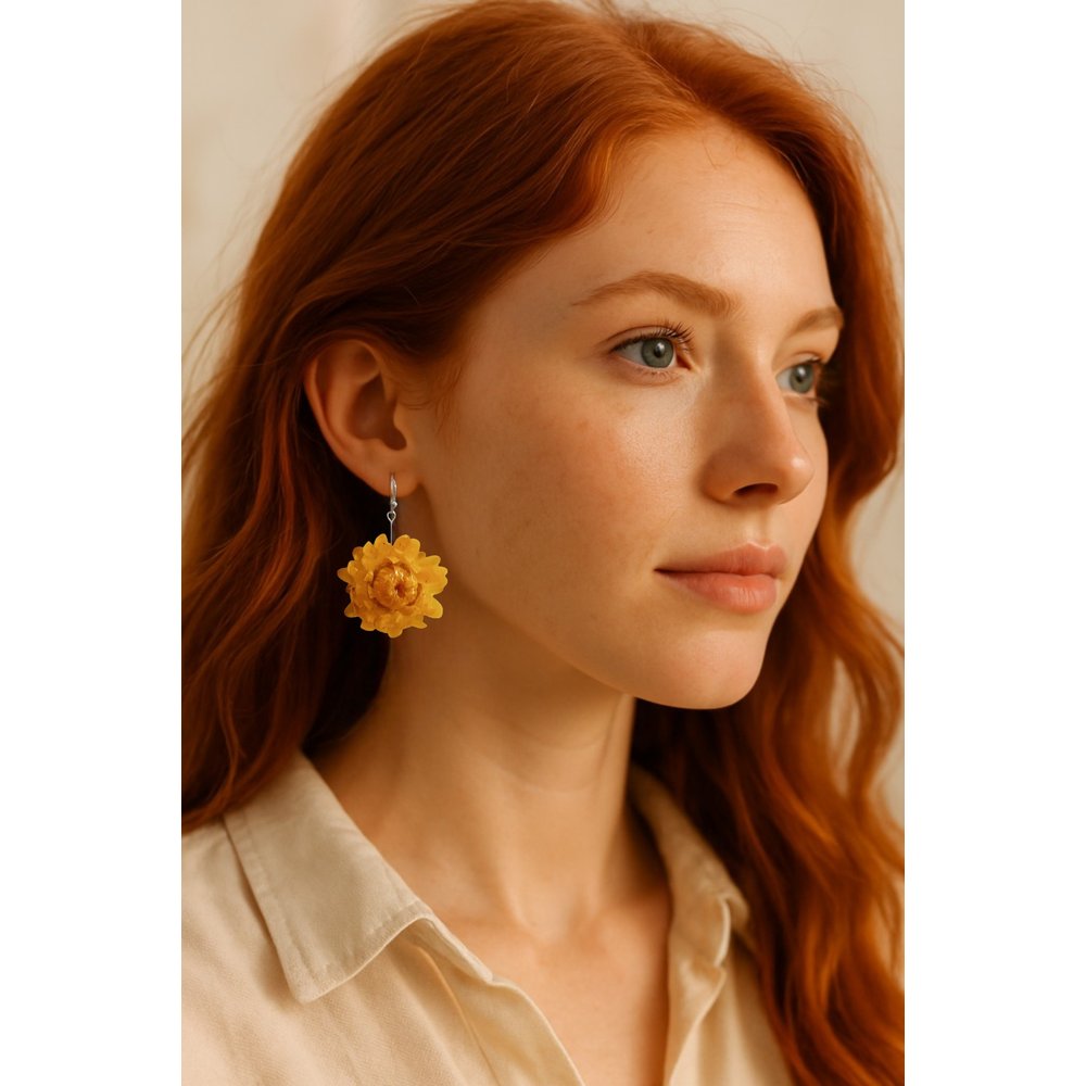 Brincos Artesanais com Flores Naturais Amarelas com Resina, estes brincos capturam a essência do verão com flores naturais amarelas, cuidadosamente secas para manterem a sua forma real e eterna.