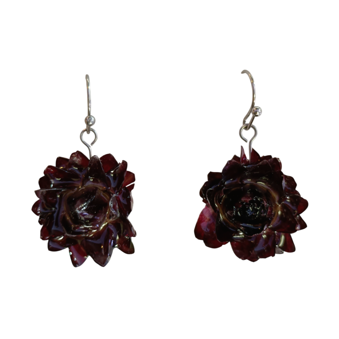 Brincos com Flor Natural Bordeaux em Resina | Feitos à Mão
