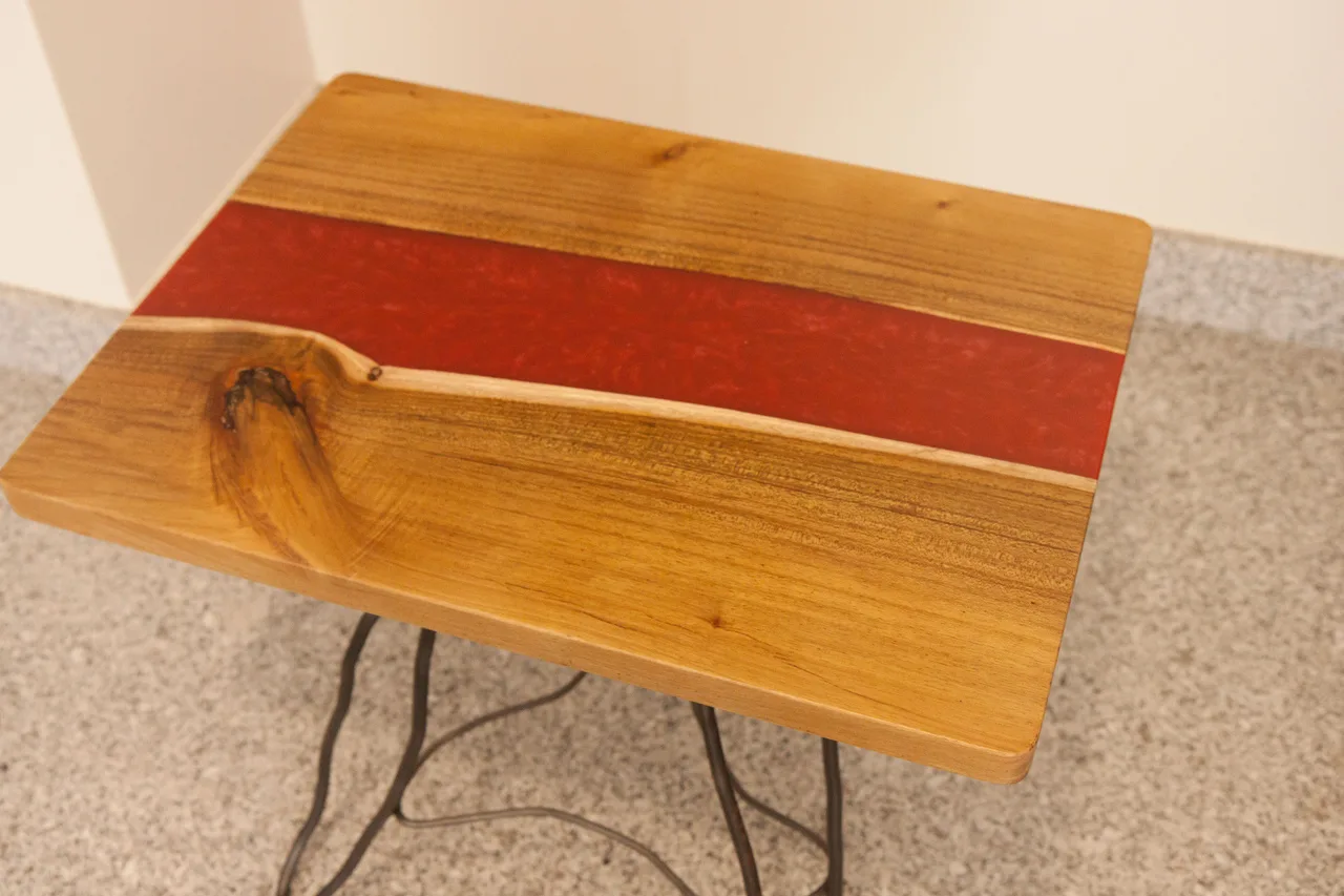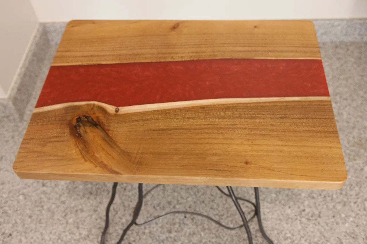 Mesa de Apoio em Madeira de Acácia com Resina Vermelha | Mensalflumen Series