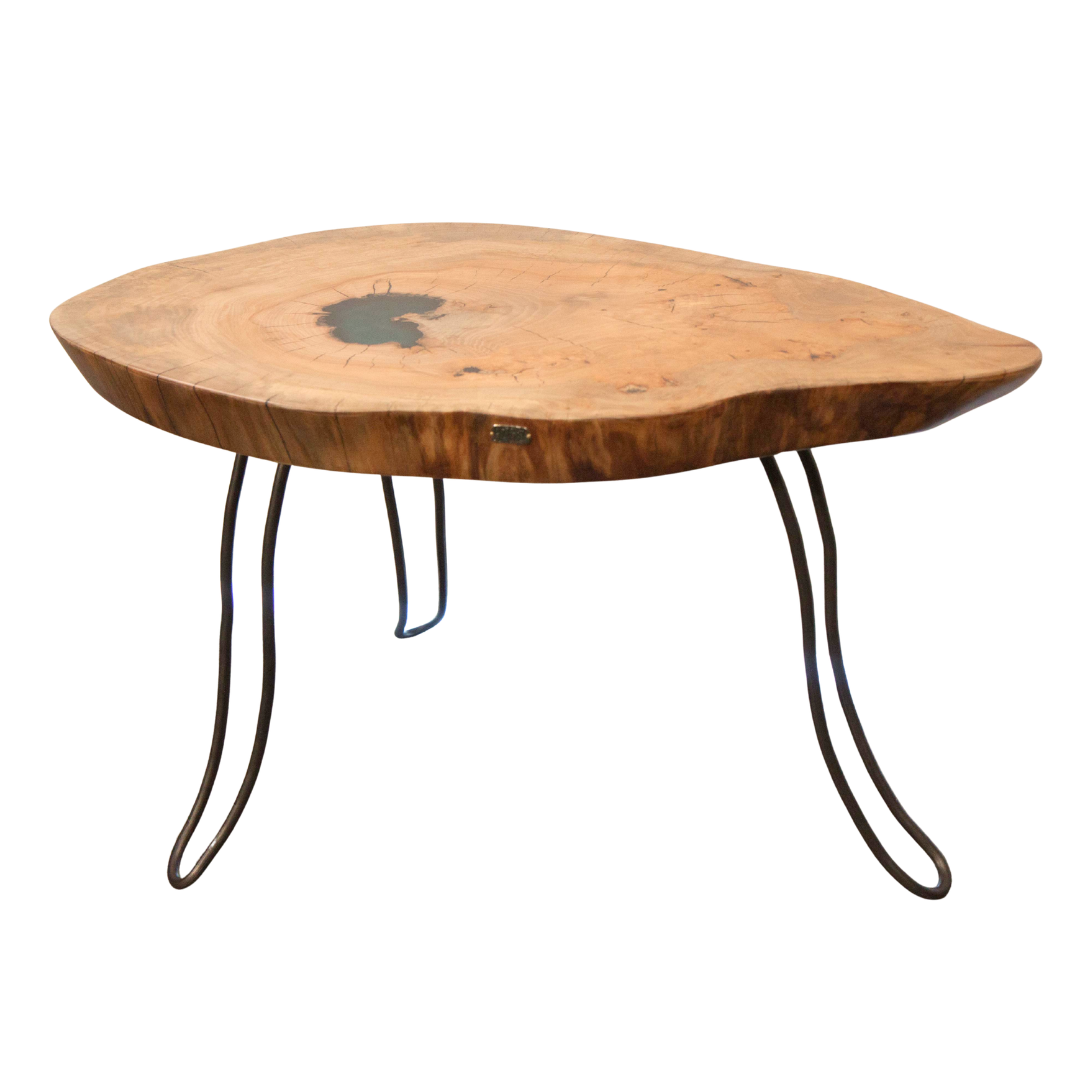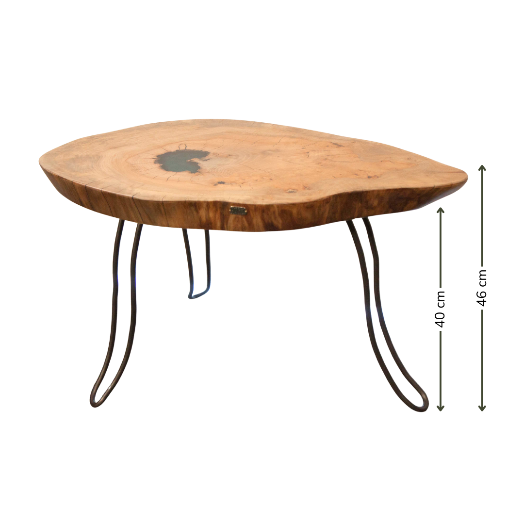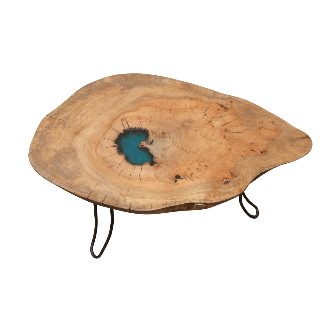 Mesa de Centro Artesanal em Madeira de Plátano e Resina Azul | AcermensaII Series