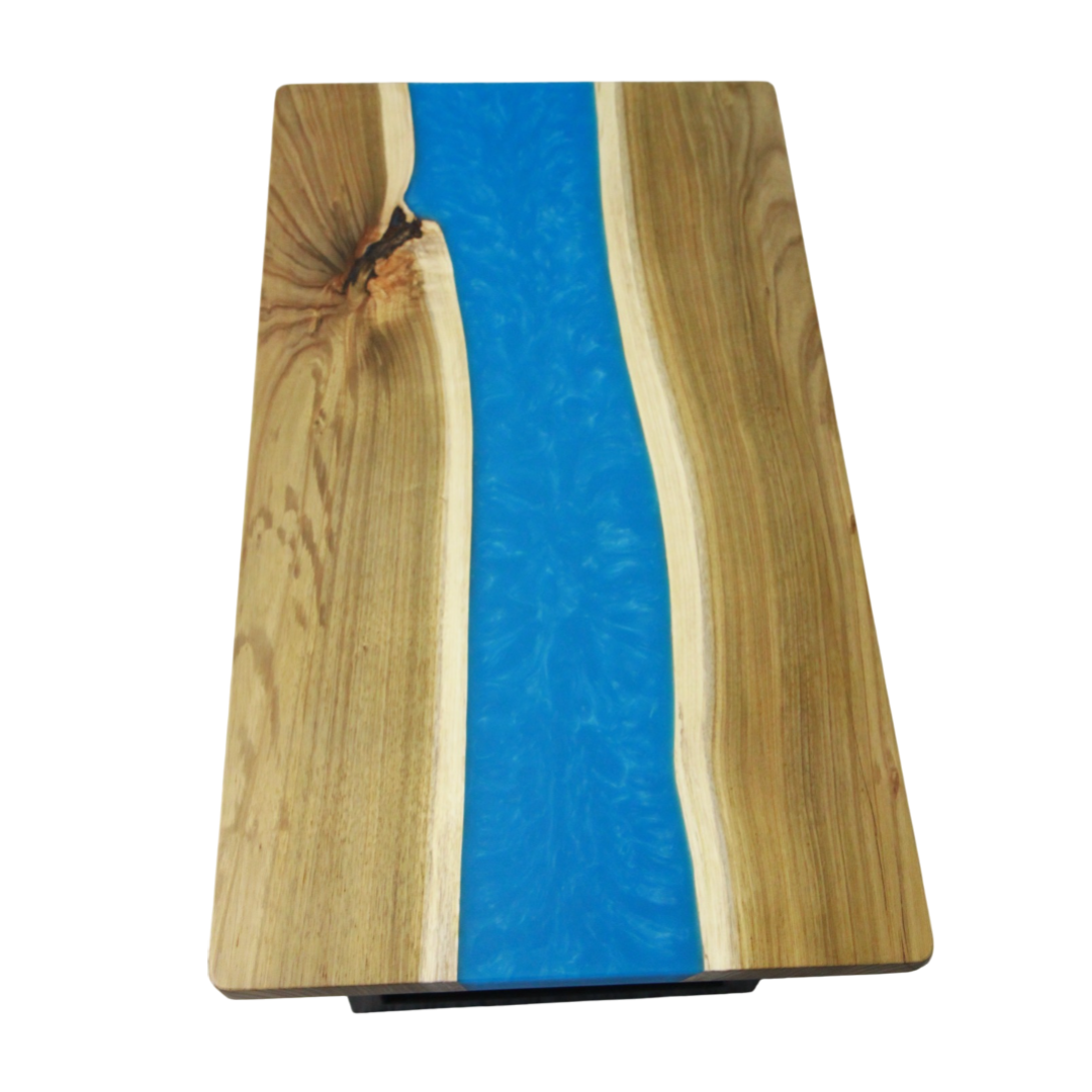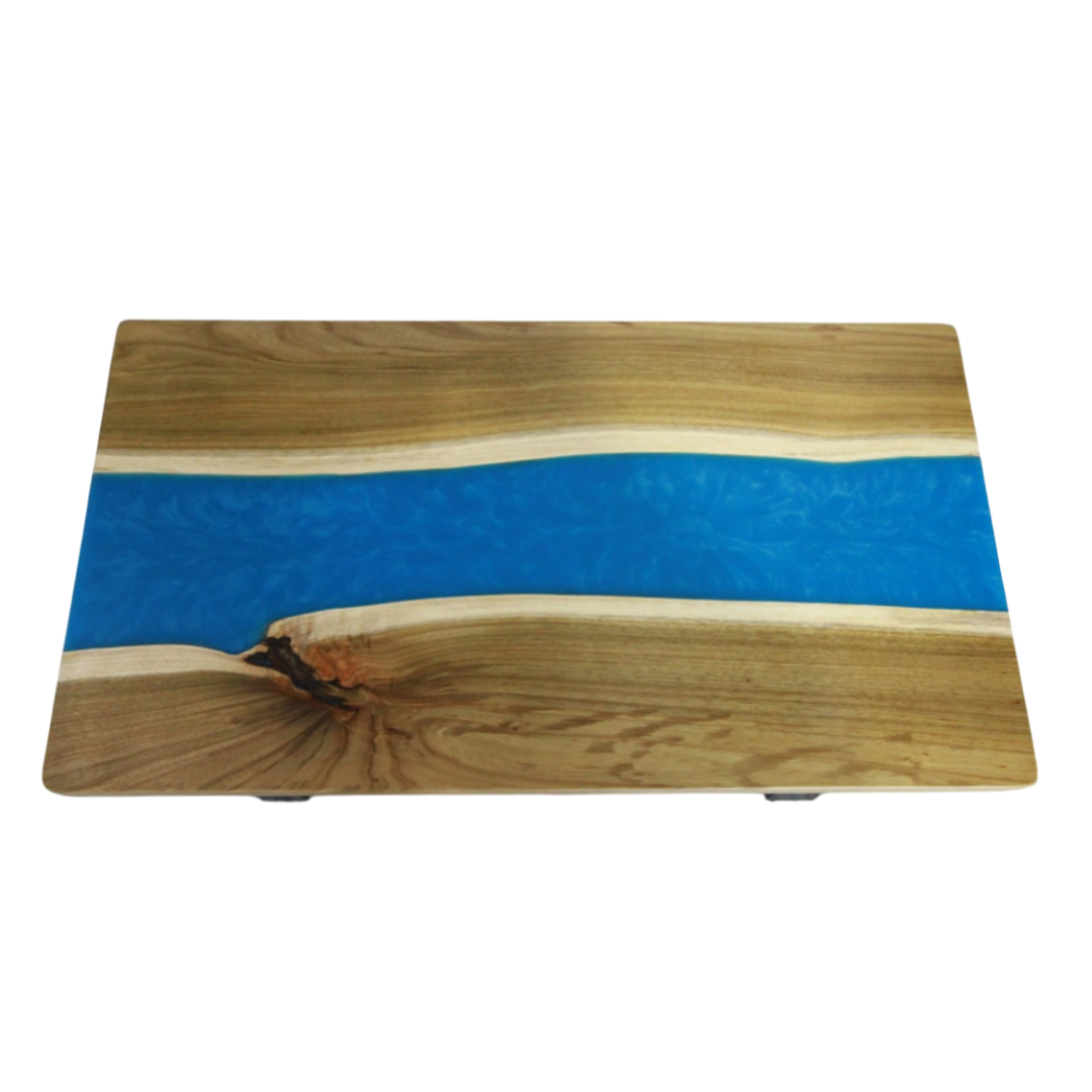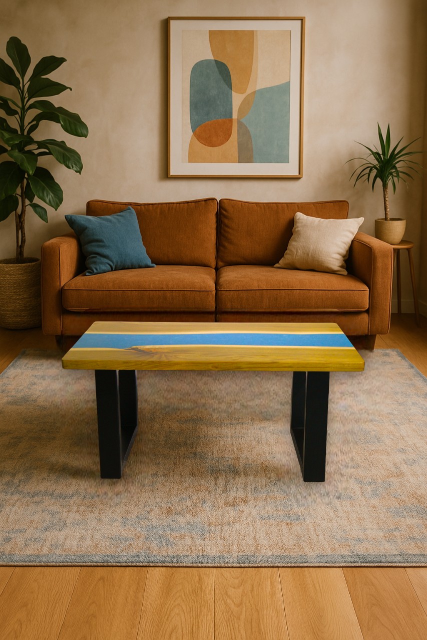 Mesa de Centro em Madeira de Acácia com Resina Azul | Mensalflumen Series