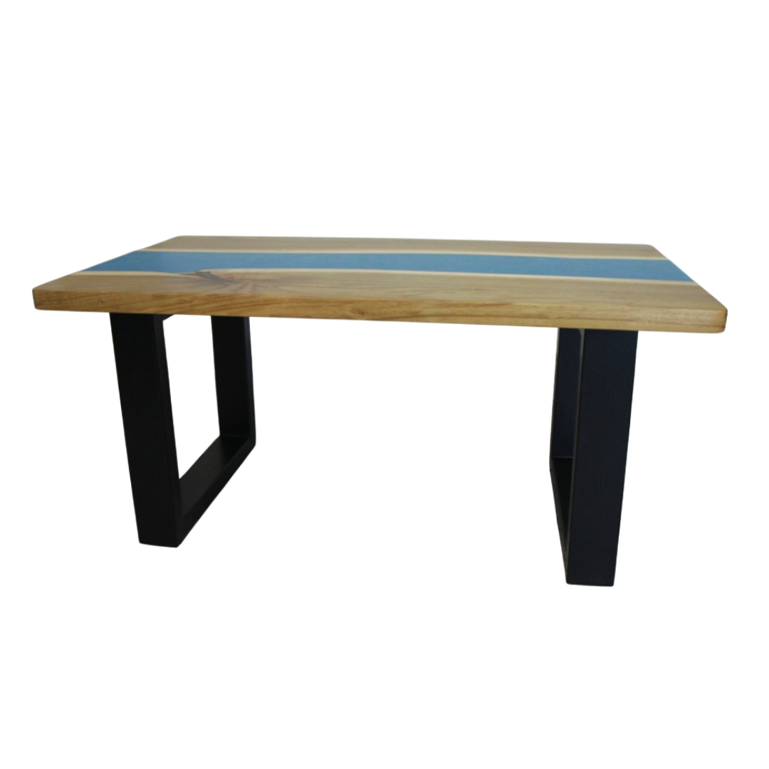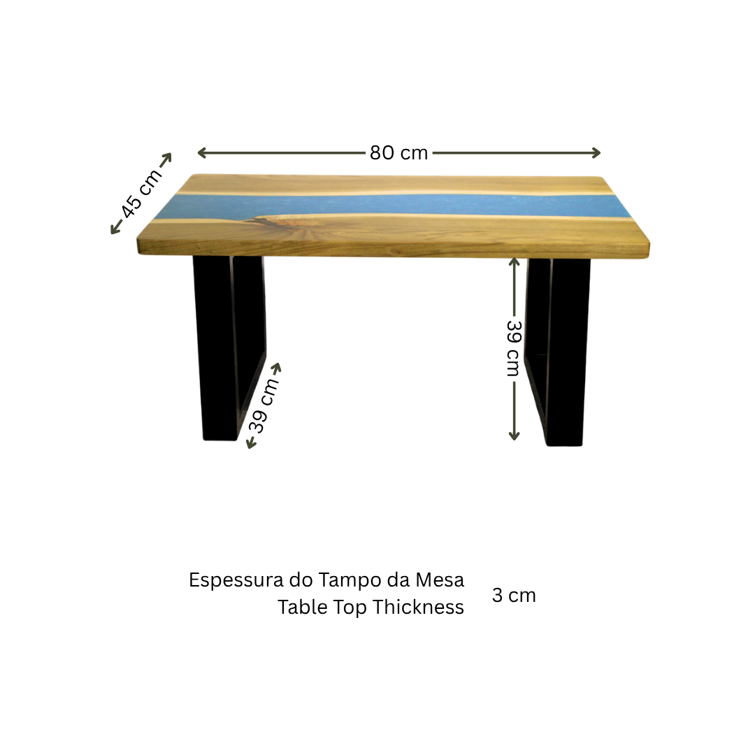 Uma serena corrente de resina azul flui artisticamente pelo centro, que confere à mesa um visual moderno e exclusivo, que evoca a fluidez de um rio!