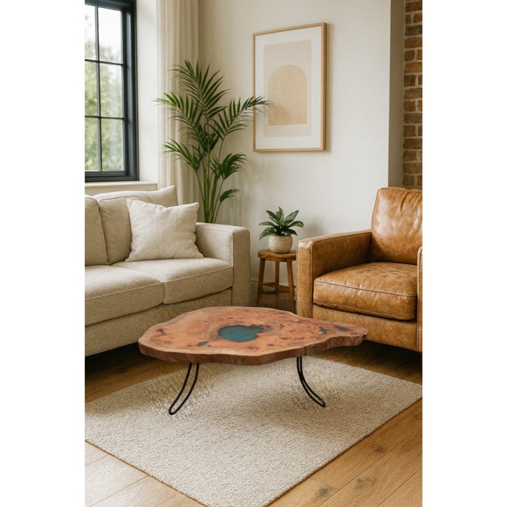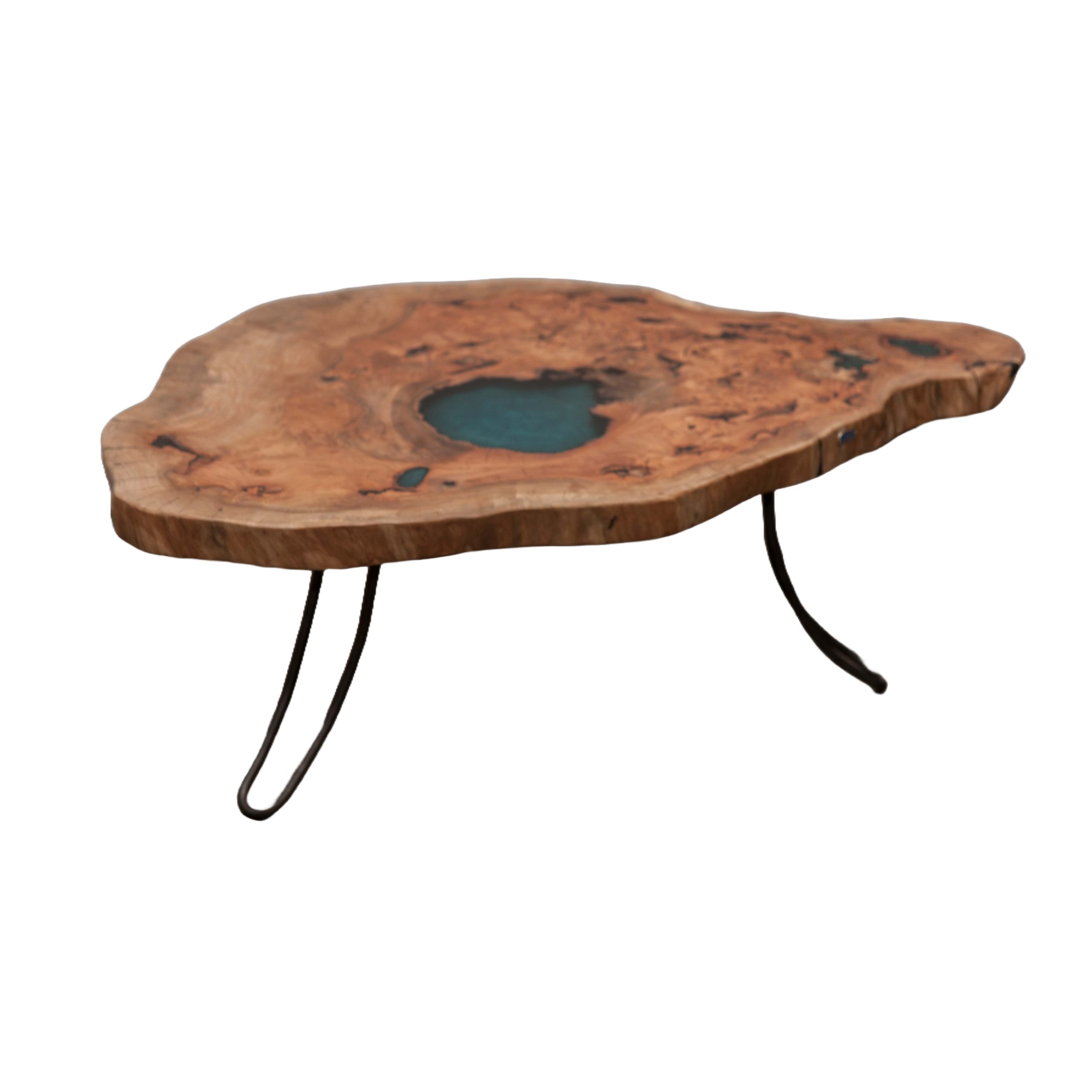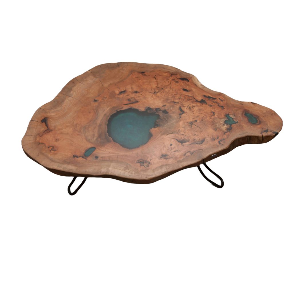 Mesa de Centro em Madeira de Plátano com Resina Azul | Acermensa Series